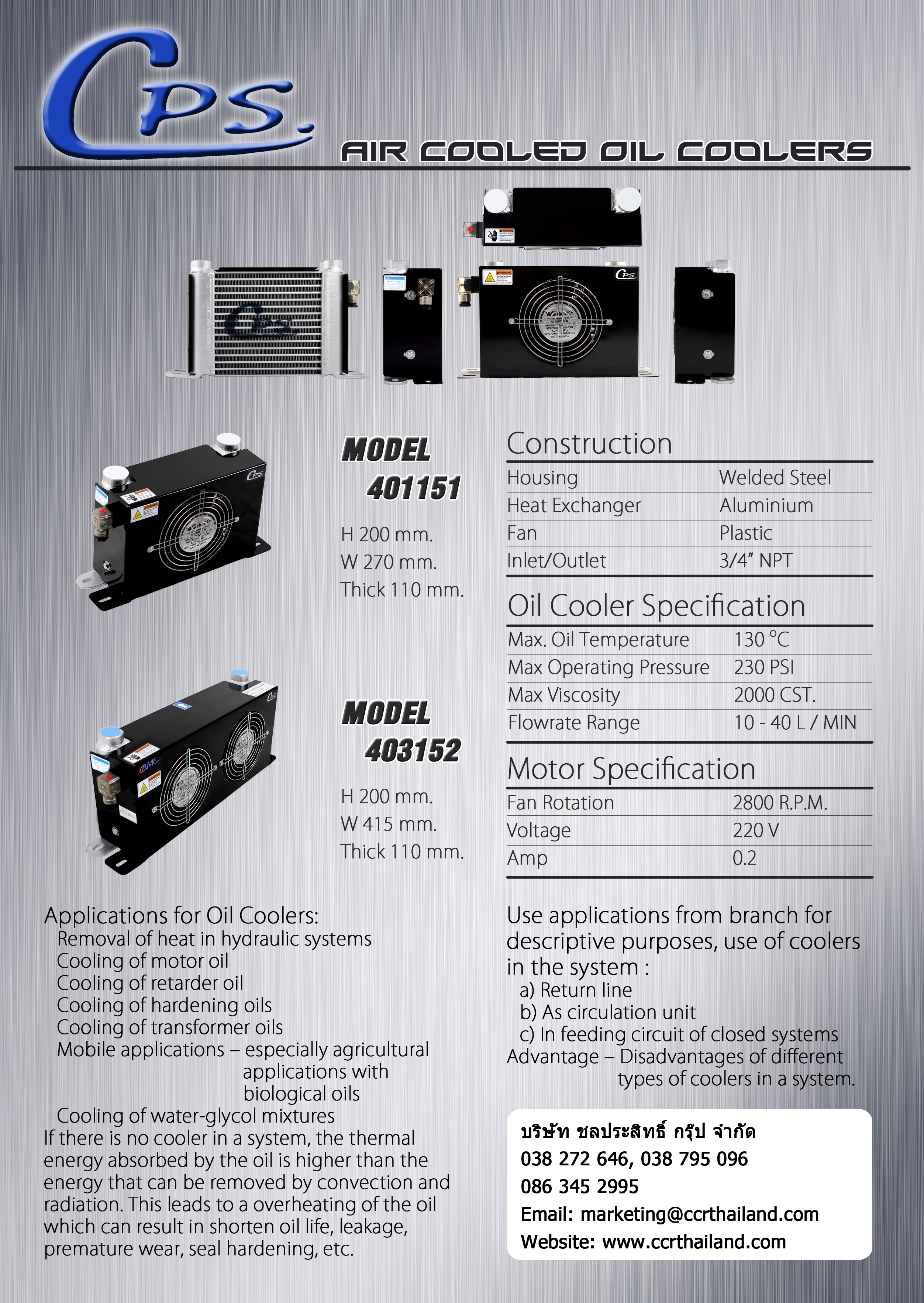 - เหมาะสำหรับระบายความร้อนระบบไฮดรอลิคของเครื่องปั้ม เครื่องตัด และเครื่องปั้มต่อเนื่องต่างๆ